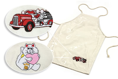 Description Protective Apron. Calico with Motiff plus Neck and Waist Draw String. For ages 3 to 5 years